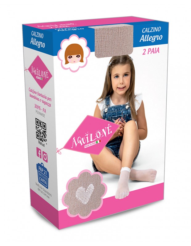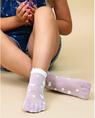 2 paia – calzini bambina velati con fantasia ricamata all over e bordo merletto.