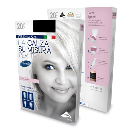 Calza autoreggente donna microfibra 50 denari con balza in pizzo siliconato, taglie calibrate dalla 46 alla 52.