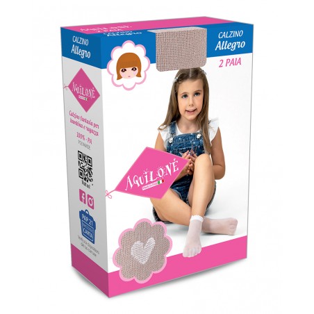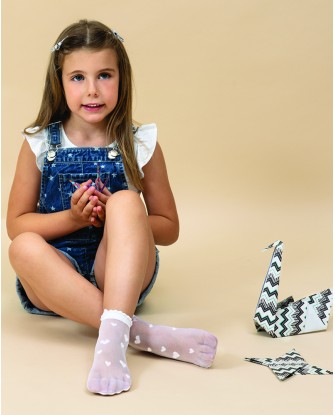 2 pairs – girls’ sheer socks with all-over embroidered pattern and edge with crenellation.