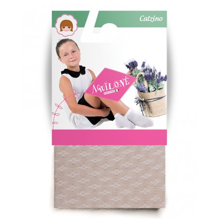 Girl socks with openwork effect and geometrical fancy and edge with crenellation.