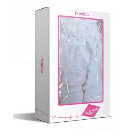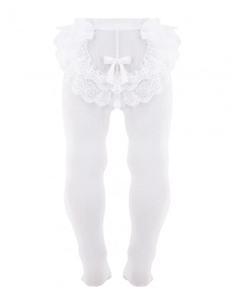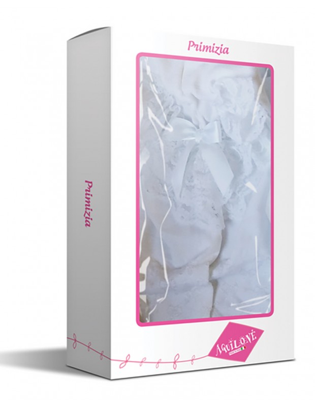 Collant neonata in cotone traspirante con culotte in pizzo e fiocco.