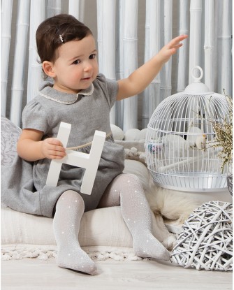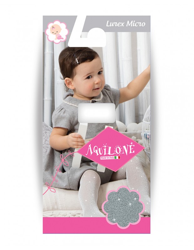 Collant neonata in morbida ed elastica microfibra con effetto luccicante con filo lamè ad effetto lurex.