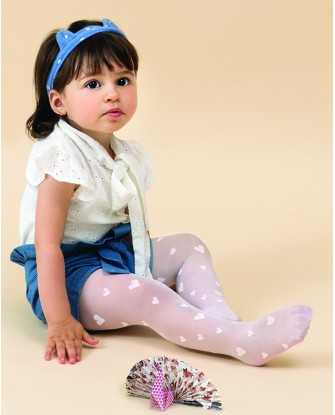 Collant neonata velato 20 denari con fantasia ricamata all over.